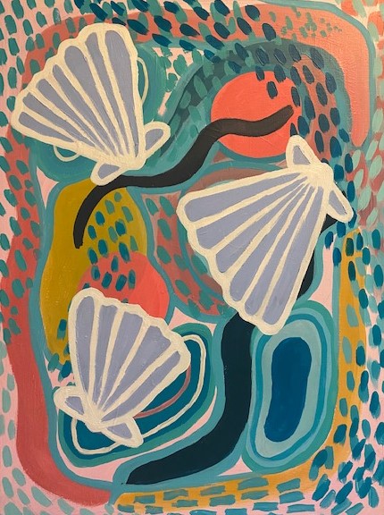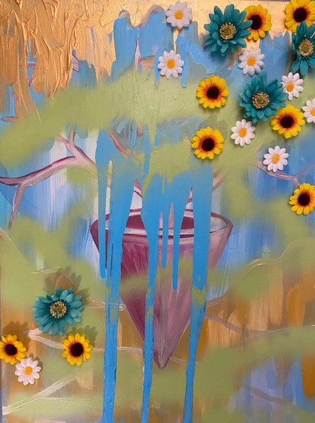 Acrylic paint on canvas combined with pastels and additional water-based inks.